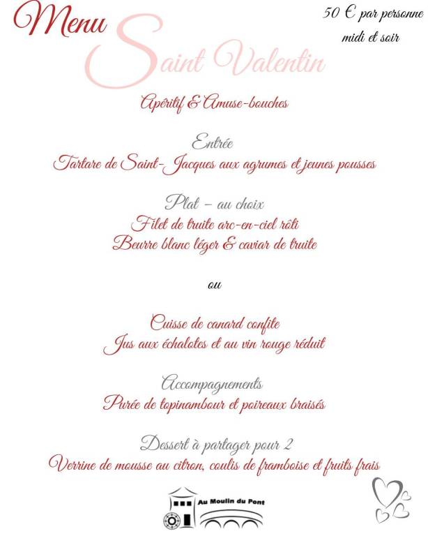 menu St Valentin