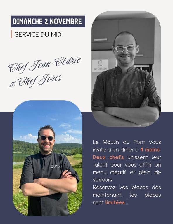 Le temps d'un repas, notre chef Joris sera accompagné du chef Jean-Cédric GLAY pour un menu à 4 mains où saveurs et qualité seront au rendez vous.