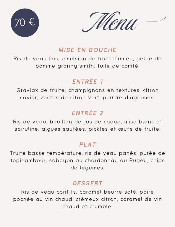 Ce menu est à 70 euros pour deux personnes - l'apéritif est alcoolisé ou non suivant votre demande.